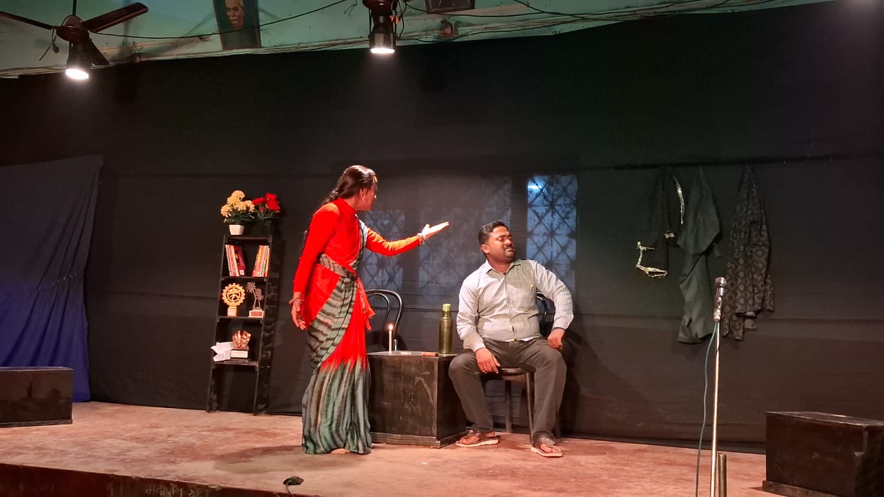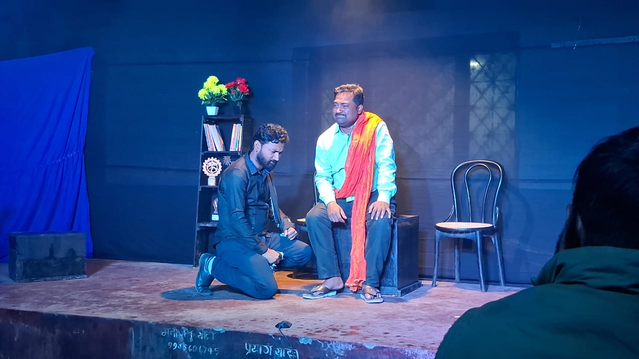 संस्कृति विभाग के निदेशक की भुमिका में अनुराग सागर ने अपने अभिनय क्षमता से यह दर्शाता है कि किस प्रकार एक औफीसर जिन्हें नाटक की बारिकियों का पता नहीं उल्टे पुल्टे सवाल करके कलाकार की क्षमता की अवहेलना करते हैं दर असल उस औफीसर को ना रजत को नौकरी देना था ना ग्रांट सिर्फ कलाकार को ईंसल्ट करना था. अनुष्का सिन्हा वसुंधरा की भुमिका करते हुए एक बेरोजगार कलाकार नौकरी की चाहत में संस्कृति विभाग में एक साक्षात्कार में भाग लेने की अच्छी भुमिका अदा की. लेखक नवीन वर्मा की भुमिका में ईंद्रजीत मिश्रा जो एक आदर्शवादी लेखक हैं. उन्होंने दस नाटक लिखा है लेकिन आदर्शवादी नाटक होने के कारण एक का भी मंचन नहीं हुआ लेकिन निर्देशक बद्रीकौल की भुमिका कर रहे संदीप सिन्हा ने नाटक को जिवंतता प्रदान की नाटक तब बहुत ही भावनात्मक रूप लिया जब नवीन वर्मा की पत्नी भुमिका अदा कर रही अर्पिता को अपंग अंगद कहता है मैं भी साथ चलुंगा तो अर्पिता अपने बच्चे की याद में वह विलख कर रोने लगती है कि आज उसका बच्चा होता तो ईतना ही बड़ा होता वह भी एक अभिनेता बनना चाहता था दर्शकों ने तालियों की गडगडाहट से उसके अभिनय की तारीफ की. ईस नाटक को संगीत लाईट विकास रंजन ने दिया.