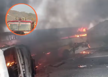 अमरावती. आंध्र प्रदेश में एक हृदयविदारक सड़क हादसे में 14 लोगों की जिंदा जलकर मौत हो गई, जबकि 23 अन्य गंभीर रूप से घायल हो गए. घटना उस समय हुई जब एक प्राइवेट बस की टक्कर बजरी से भरे ट्रक से हो गई, जिसके तुरंत बाद बस में भीषण आग लग गई. न्यूज़ एजेंसी पीटीआई द्वारा जारी वीडियो में देखा जा सकता है कि राहत और बचाव टीमें मौके पर मुस्तैद हैं और धधकती आग को बुझाने के साथ-साथ बस में फंसे लोगों को निकालने का प्रयास किया जा रहा है. स्थानीय प्रशासन और पुलिस की टीमें युद्धस्तर पर रेस्क्यू ऑपरेशन चला रही हैं.