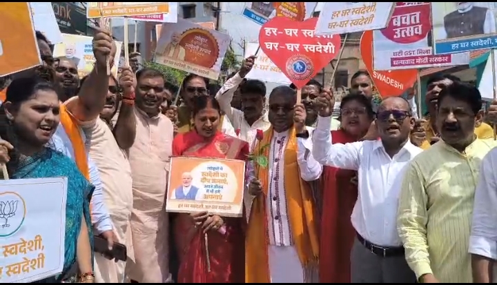 जीएसटी में सुधार के लिए पीएम मोदी का धन्यवाद : टावर चौक पर भाजपाइयों ने लोगों को जीएसटी बचत के बारे में संबोधित किया और जीएसटी में किए गए सुधारों के लिए प्रधानमंत्री नरेंद्र मोदी को धन्यवाद दिया। इस मौके पर बाबूलाल मरांडी ने लोगों को संबोधित करते हुए कहा कि जीएसटी से लोगों को बचत हो रही है और व्यापार करने में भी आसानी हुई है।