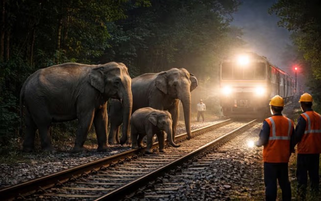 चक्रधरपुर. चक्रधरपुर रेल मंडल ने मंगलवार देर रात हाथियों की जान बचाने के लिए एक बेहद संवेदनशील और बड़ा फैसला लिया. हावड़ा-मुंबई मुख्य रेल मार्ग पर भालूलता-जरायकेला रेलखंड के महपानी गेट के पास पांच हाथियों का झुंड ट्रैक पर आ गया था. सूचना मिलते ही रेलवे ने मुंबई मेल और हावड़ा मेल समेत कई ट्रेनों को करीब आधे घंटे तक पूरी तरह रोक दिया. इसके बाद सुरक्षा के मद्देनजर करीब चार घंटे तक ट्रेनों को महज 20 किमी प्रति घंटे की रफ्तार से चलाया गया. पेट्रोलमैन की सतर्कता और रेलवे की त्वरित कार्रवाई से एक नन्हे हाथी समेत पूरे झुंड की जान बच गई. घटना के बाद से रेलकर्मी सुरक्षा को लेकर अलर्ट पर हैं और इलाके में गश्त बढ़ा दी गई है.