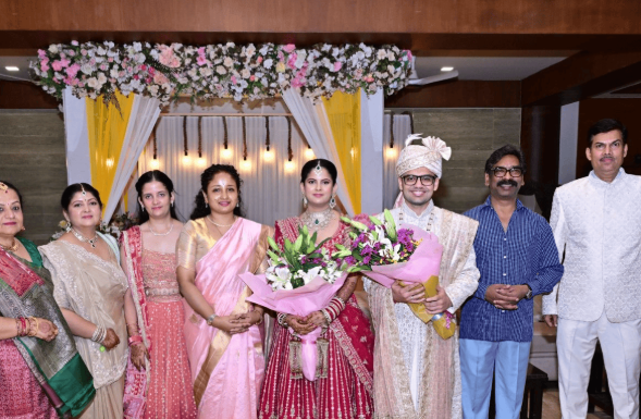 नवदंपति को दी शुभकामनाएं: मुख्यमंत्री हेमंत सोरेन ने वर-वधू को मंच पर जाकर आशीर्वाद दिया और उनके सुखद दांपत्य जीवन की मंगलकामना की. इस दौरान विधायक कल्पना सोरेन ने भी नवदंपति को बधाई दी.