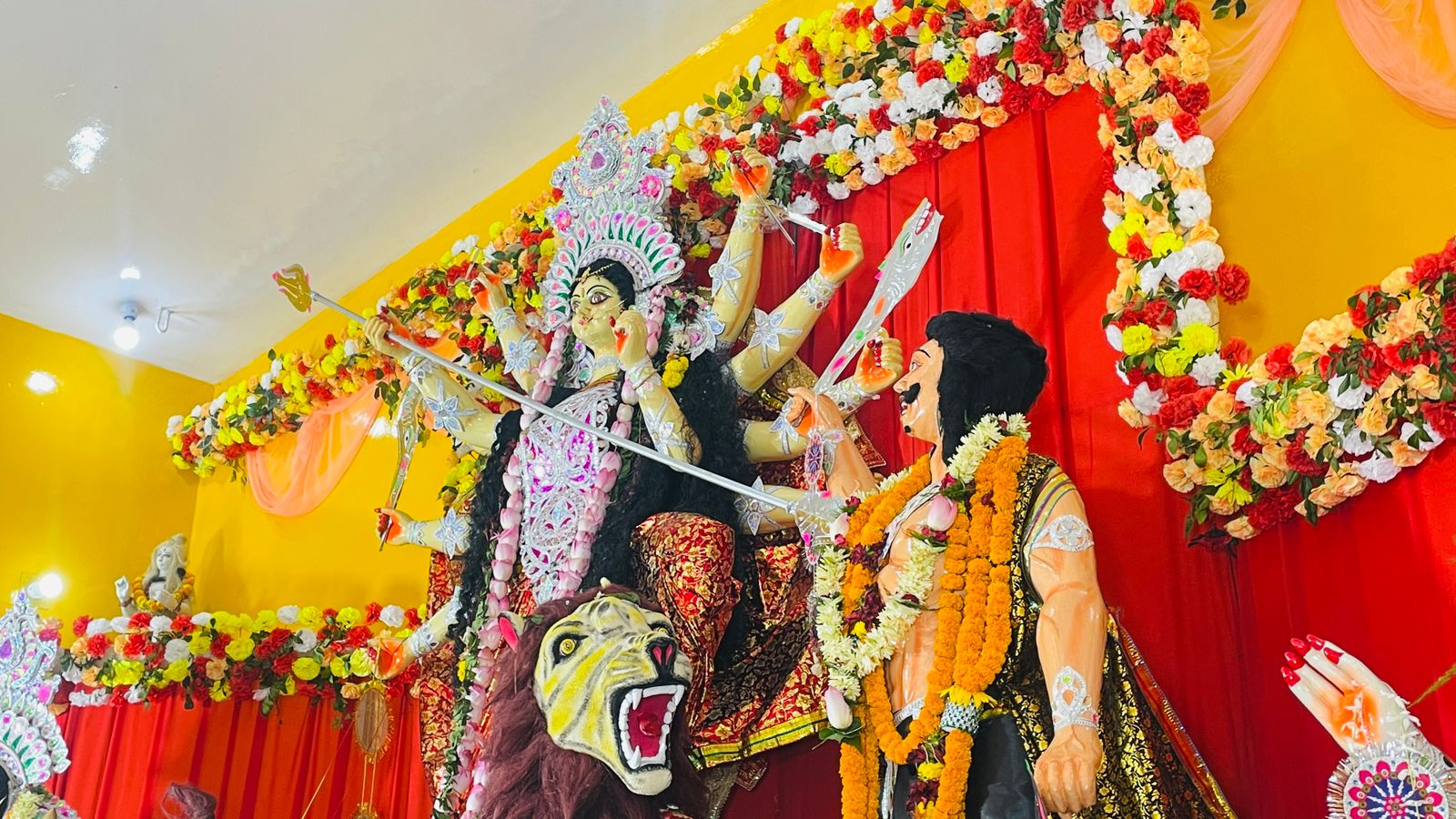 गिरिडीह. शारदीय नवरात्रि के दौरान मंगलवार को महाष्टमी के पावन अवसर पर गिरिडीह शहर और आसपास के ग्रामीण क्षेत्रों के दुर्गापूजा मंडपों में श्रद्धालुओं का सैलाब उमड़ पड़ा। सुबह से ही विभिन्न पूजा पंडालों और मंदिरों के बाहर भक्तों की लंबी कतारें लग गईं जिससे पूरा माहौल भक्तिमय हो गया।महाष्टमी के दिन देवी दुर्गा के महागौरी स्वरूप की पूजा का विशेष महत्व होता है। इसी आस्था के साथ बड़ी संख्या में भक्तों ने मां दुर्गा को चुनरी, नारियल, फल और मिष्ठान्न अर्पित कर पूजा-अर्चना की। कई मंडपों में पारंपरिक हवन और कन्या पूजन का आयोजन भी किया गया।