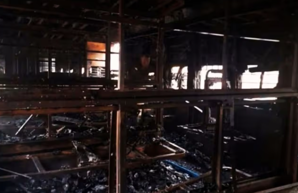 बर्दवान. पूर्व बर्दवान के कटवा रेलवे स्टेशन पर रविवार तड़के करीब साढ़े चार बजे कटवा-अजीमगंज पैसेंजर ट्रेन के एक कोच में भीषण आग लग गयी. शुरुआत में इसे शॉर्ट सर्किट माना जा रहा था, लेकिन सीसीटीवी फुटेज में संदिग्ध गतिविधियों के दिखने के बाद अब साजिश का एंगल सामने आया है. दमकल की दो गाड़ियों ने करीब 1 घंटा 20 मिनट की मशक्कत के बाद आग पर काबू पाया, हालांकि पूरा कोच जलकर राख हो गया है. रेलवे अधिकारियों ने मामले की गंभीरता को देखते हुए उच्च स्तरीय जांच शुरू कर दी है और सोमवार को फॉरेंसिक टीम भी साक्ष्य जुटाने के लिए मौके पर पहुंची. फिलहाल जीआरपी और आरपीएफ पूरे मामले की बारीकी से जांच कर रहे हैं कि यह महज हादसा था या कोई बड़ी सोची-समझी साजिश.