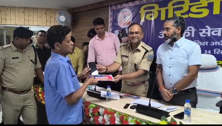 गिरिडीह. पुलिस के द्वारा आपका मोबाइल फिर से आपका अभियान की शुरुआत की है. इस अभियान को लेकर बुधवार को गिरिडीह के समाहरणालय के सभा कक्ष में एक कार्यक्रम का आयोजन किया गया जिसमें मुख्य रूप से गिरिडीह के डीसी रामनिवास यादव व एसपी डॉ. विमल कुमार समेत जिले भर के तमाम पुलिस पदाधिकारी मौजूद रहे. इस बाबत गिरिडीह एसपी डॉ. विमल कुमार ने बताया कि गिरिडीह पुलिस के द्वारा पूरे जिले भर में आपका मोबाइल फिर से आपका विशेष अभियान चलाया गया जिसमें आज 113 ऐसे लोगों को उनका मोबाइल फोन सौंपा गया जिनका मोबाइल फोन पिछले दो-तीन वर्षों में अलग-अलग स्थान से चोरी हो गया था. उन्होंने बताया कि गिरिडीह पुलिस के द्वारा पिछले 4 वर्ष 5 वर्षों में गुम हुए मोबाइल फोन का डाटा निकाला जा रहा है और आगे भी जिन-जिन लोगों का मोबाइल फोन चोरी हुआ है, उनके मोबाइल फोन को गिरिडीह पुलिस के द्वारा ढूंढकर उनके हाथों में सौंपा जाएगा. यह अभियान निरंतर जारी रहेगा ताकि लोग अपने मोबाइल फोन के गुम होने के बाद परेशान नहीं हो.