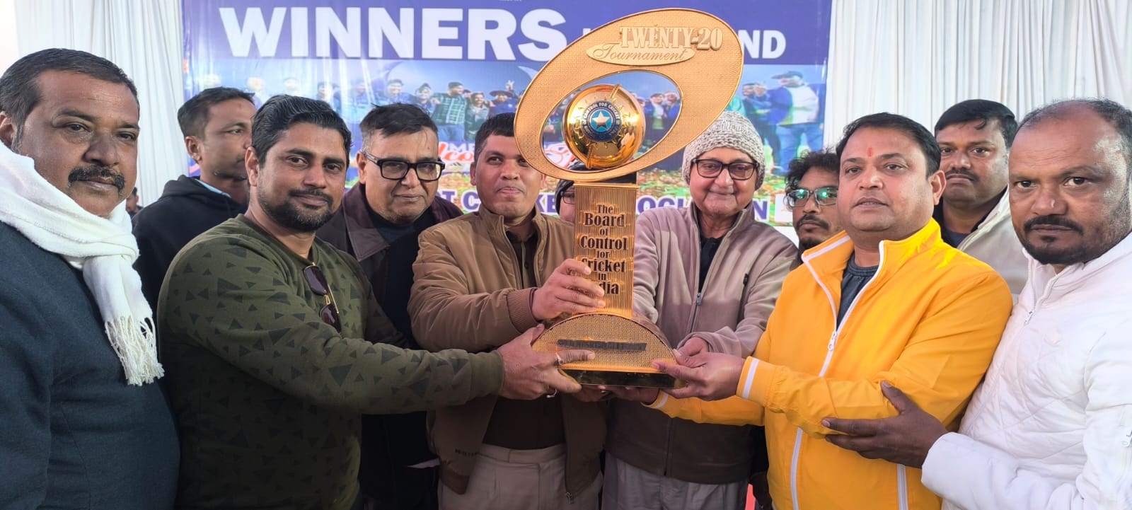 गिरिडीह. झारखंड क्रिकेट के इतिहास में एक ऐतिहासिक पल तब जुड़ा, जब सैयद मुश्ताक अली टी-20 ट्रॉफी का गिरिडीह में भव्य स्वागत किया गया. हरियाणा को 69 रनों से हराकर झारखंड टीम ने यह प्रतिष्ठित खिताब अपने नाम किया और पूरे राज्य को गौरवान्वित किया. गिरिडीह स्टेडियम में आयोजित समारोह के दौरान जिला प्रशासन और झारखंड राज्य क्रिकेट एसोसिएशन की मौजूदगी में युवाओं को प्रेरित किया गया. यंहा एक कार्यक्रम का आयोजन किया गया जिसमें मुख्य अतिथि के रुप में एसडीपीओ जीतवाहन उरांव शामिल हुए. उन्होंने ट्रॉफी को अपने हाथों में लेकर स्वागत किया और खिलाडियों का हौसला बढ़ाया. मौक़े पर अजय बगेडिया, डॉ. विद्या भूषण, गुड्डू यादव, बिकास सिन्हा, निकिता गुप्ता, नवीन सिन्हा, आलोक रंजन ,रूपेश रजक, दिलीप रजक, राजू , बिनोद यादव समेत कई लोग मौजूद रहे.