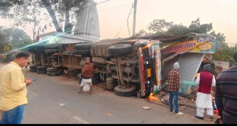 गिरिडीह. गांडेय प्रखंड अंतर्गत महेशमुंडा चौक पर मंगलवार की देर रात तेज रफ्तार का कहर देखने को मिला. चौक के पास एक तीखी मोड़ पर अनियंत्रित होकर बालू से लदा एक ट्रक पलट गया जिससे चौक पर मौजूद लगभग आधा दर्जन दुकानें बुरी तरह क्षतिग्रस्त हो गयी. प्राप्त जानकारी के अनुसार मंगलवार की रात एक तेज रफ्तार बालू लदा ट्रक महेशमुंडा चौक की ओर आ रहा था. चौक के पास तीखी मोड़ पर ड्राइवर ने ट्रक से नियंत्रण खो दिया. ट्रक अनियंत्रित होकर बैंक ऑफ इंडिया के समीप भीषण तरीके से पलट गया. ट्रक पलटने से आसपास की दुकानें उसकी चपेट में आ गईं और बुरी तरह क्षतिग्रस्त हो गयी. हादसे में कई छोटे दुकानदारों का भारी नुकसान हुआ है. क्षतिग्रस्त होने वाली दुकानों में प्रमुख रूप से नकुल ठाकुर की पान दुकान, छठु ठाकुर का मिष्ठान भंडार, बिरजू ठाकुर का सैलून, मंगरु होटल और अन्य छोटी दुकानें शामिल है. हादसे के बाद इलाके में अफरा-तफरी मच गई और रात में ही स्थानीय लोगों की भीड़ जमा हो गई. इस हादसे में जान-माल का नुकसान नहीं हुआ है, लेकिन दुकानदारों को आर्थिक रूप से क्षति पहुंची है.