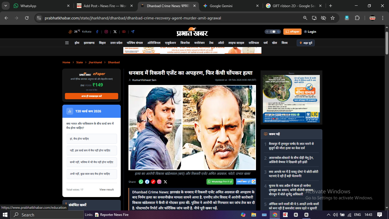 धनबाद में खौफनाक वारदात: रिकवरी एजेंट का अपहरण कर बेरहमी से कत्ल, कैंची घोंपकर ली जान