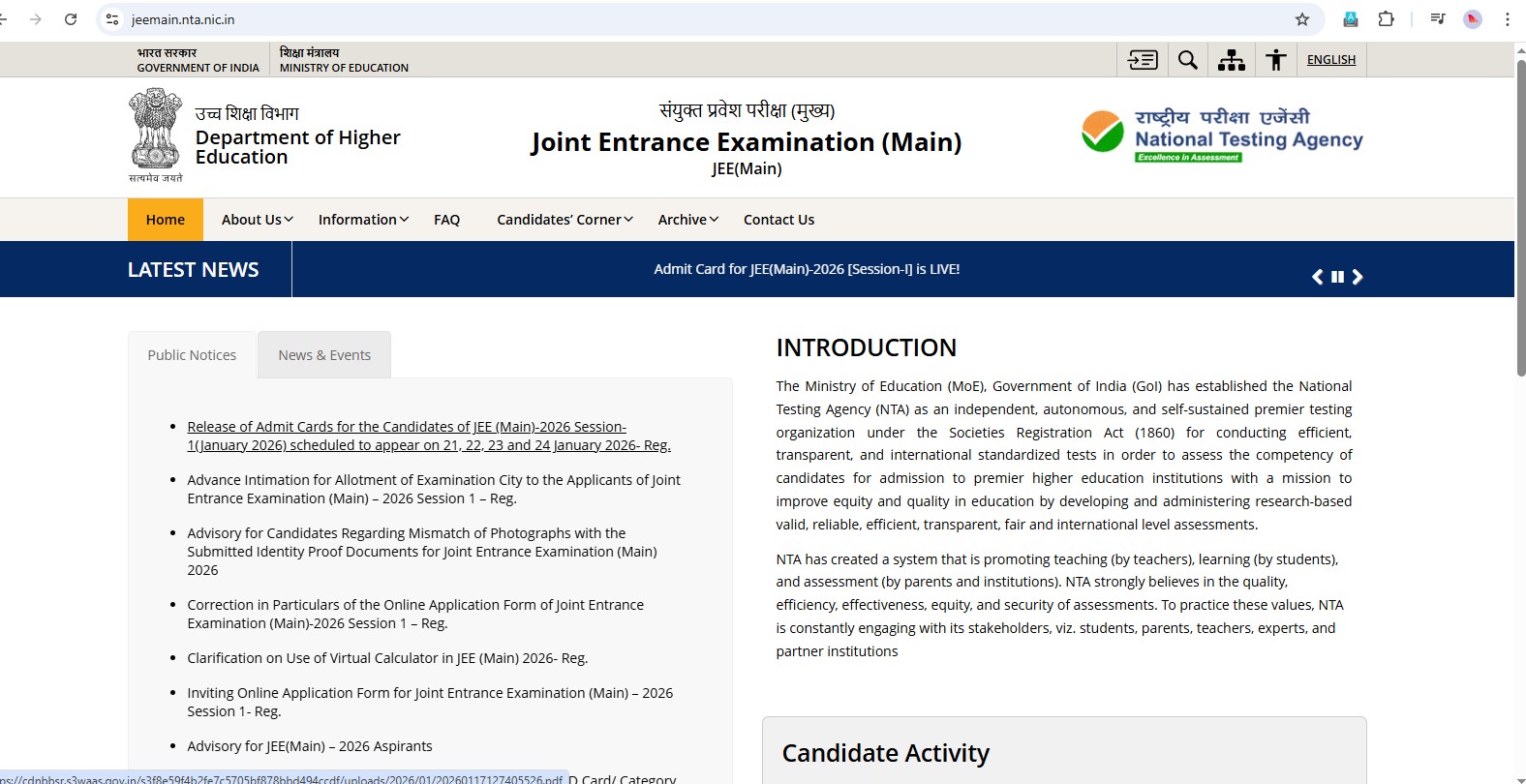 • यहां होमपेज पर JEE Main Admit Card के लिंक पर क्लिक करें.