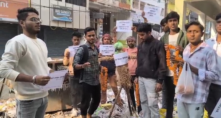 गिरिडीह. गिरिडीह शहरी क्षेत्र के विभिन्न वार्डों में रविवार को जागरूक जनता संघ के सदस्यों के द्वारा नगर निगम के खिलाफ अनोखा प्रदर्शन किया गया. सुबह-सुबह जागरूक जनता संघ के सदस्य शहरी क्षेत्र के विभिन्न वार्डों में घूम-घूमकर निरीक्षण किया और जहां-जहां गंदगी और कचड़ा का ढेर जमा था, उन स्थानों पर नगर निगम का पुतला बनाकर उसमें फूल-माला पहनाकर निगम को सम्मानित किया. इस दौरान सदस्यों ने नगर निगम के खिलाफ जमकर नारेबाजी भी की और कहा कि लगातार नगर निगम से शहरी क्षेत्र में साफ – सफाई कराने की मांग की जा रही है. लेकिन इसके बावजूद निगम अपनी आंखें बंद करके सोई हुई है और शहर के अधिकांश गली-मुहल्लों में जगह-जगह गंदगी का अम्बार लगा हुआ है. इस बाबत संघ के विशाल चन्द्रवंशी, राकेश कुमार वर्मा, सौरभ कुमार, पवन मंडल, प्रिंस कुमार मंडल, चंदन आदि ने बताया कि नगर निगम के द्वारा गली-मुहल्लों में नियमित रूप से साफ-सफाई नहीं की जाती है जिस कारण गंदगी से लोगों का जीना मुहाल हो गया है. कई स्थानों पर न तो डस्टबिन है ओर न ही कचरा फेंकने के लिए कोई व्यवस्था. जहां डस्टबिन है, वहां सफाई होती ही नहीं है. अगर एक सप्ताह के अंदर निगम साफ-सफाई के प्रति गंभीर नहीं होता है तो आगे जन आंदोलन किया जायेगा.