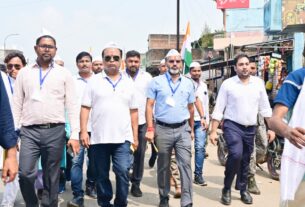 गिरिडीह. दुर्गा पूजा के दौरान शहर में शांति और सौहार्द का वातावरण बनाए रखने में अहम भूमिका निभाने वाले शांति समिति और पूजा समिति के सदस्यों को नगर थाना पुलिस ने सम्मानित किया। नगर थाना प्रांगण में आयोजित इस सम्मान समारोह में सभी सदस्यों को शॉल ओढ़ाकर और गुलाब फूल देकर सम्मानित किया गया। कार्यक्रम की अध्यक्षता डीएसपी नीरज कुमार सिंह ने की। उन्होंने कहा कि दुर्गा पूजा जैसे बड़े पर्व पर समाज के सभी वर्गों का योगदान अमूल्य है और शांति समिति के सदस्य उस सहयोग की मिसाल है। उन्होंने कहा कि ऐसे प्रयासों से न केवल त्योहार शांतिपूर्ण ढंग से संपन्न होते हैं, बल्कि आपसी भाईचारे और एकता का संदेश भी मजबूत होता है। इस दौरान गिरिडीह के सीओ जितेंद्र प्रसाद, जिला दंडाधिकारी विनोद कुमार, डीएसपी-2 कौशर अली, इंस्पेक्टर मन्टू कुमार, साइबर डीएसपी आबिद खान और नगर थाना प्रभारी ज्ञान रंजन कुमार उपस्थित थे। कार्यक्रम में मौजूद पुलिस अधिकारियों ने भी समिति सदस्यों के सतत सहयोग और सामाजिक जिम्मेदारी की सराहना की। यह सम्मान समारोह पुलिस-प्रशासन और नागरिकों के बीच सहयोग और आपसी विश्वास को और मजबूत बनाने की दिशा में एक सराहनीय पहल साबित हुआ। मौके पर प्रदीप अग्रवाल, राकेश मोदी, मुकेश जालान, राजेंद्र प्रसाद गुप्ता, अजय कुमार मंटू, गोपाल दास भदानी, लड्डू खान, अशोक यादव, राजेंद्र यादव, दीपक स्वर्णकार, विवेश जालान, रवि रंजन, रूमी अख्तर, नौशाद अली चांद समेत गिरिडीह शहरी क्षेत्र के सभी पूजा कमिटी के सदस्य और शांति समिति के कई गणमान्य लोग मौजूद रहे।