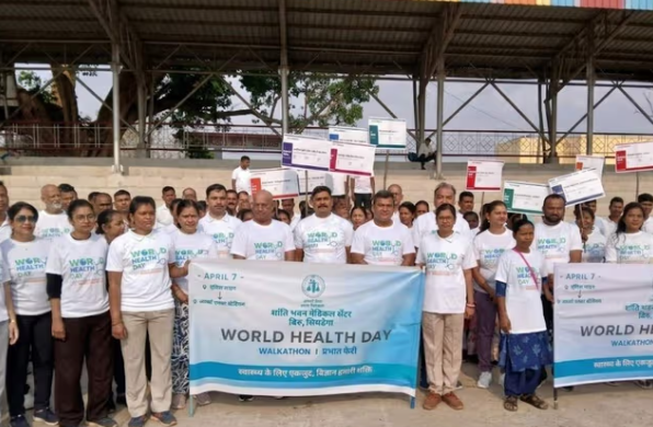 सिमडेगा. झारखंड के सिमडेगा जिले में विश्व स्वास्थ्य दिवस के उपलक्ष्य में सोमवार को स्वास्थ्य के प्रति जागरूकता फैलाने के उद्देश्य से एक भव्य प्रभात फेरी का आयोजन किया गया. शांति भवन मेडिकल सेंटर और जिला पुलिस विभाग के संयुक्त तत्वावधान में निकाली गई इस रैली में सैकड़ों की संख्या में डॉक्टर, नर्सिंग स्टाफ, पुलिस अधिकारी और जवानों ने हिस्सा लिया.