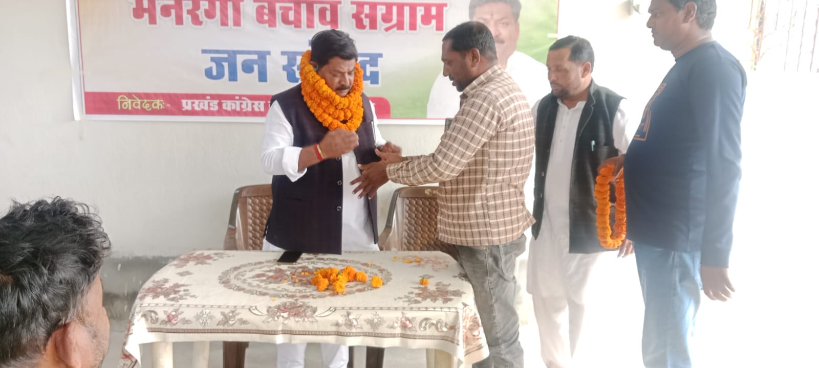अब केंद्र सरकार ने अपना हिस्सा घटाकर 60% कर दिया है जिससे गरीब राज्यों पर आर्थिक बोझ बढ़ेगा और कमजोर राज्य इसके लिए पैसा कहां से लाएंगे. इसलिए कांग्रेस पार्टी नहीं से बतौर संग्राम लेना तय किया है और हमारी चार प्रमुख मांगे हैं जिसमें गारंटी कृत काम और मनरेगा में किए गए सभी बदलाव वापस लिए जाए. काम के संवैधानिक अधिकार की पूर्ण बहाली हो और राष्ट्रीय न्यूनतम मजदूरी रुपए 400 की जाए इसको लेकर तमाम ग्राम पंचायत तक कांग्रेस पार्टी आंदोलन करेगी इस जन संवाद कार्यक्रम में उपस्थित लोगों के बीच एस आई आर को लेकर और बी एल ए को लेकर भी जानकारियां साझा की गई मौके पर मुख्य रूप से जिला कांग्रेस कमेटी के उपाध्यक्ष मोहम्मद समीम वीरेंद्र सिंह सुरेश दास समीर मोहम्मद इमरान हजरत अली जिब्राइल मोहम्मद जॉन मोहम्मद अबरार शोएब फकीर सोहराब मनन हजल सरफराज नरेश ठाकुर सुरेश प्रसाद सुरेंद्र सिंह सुखदेव रविदास शहीद कई प्रमुख कांग्रेस कर्मी एवं मनरेगा मजदूर उपस्थित रहे.