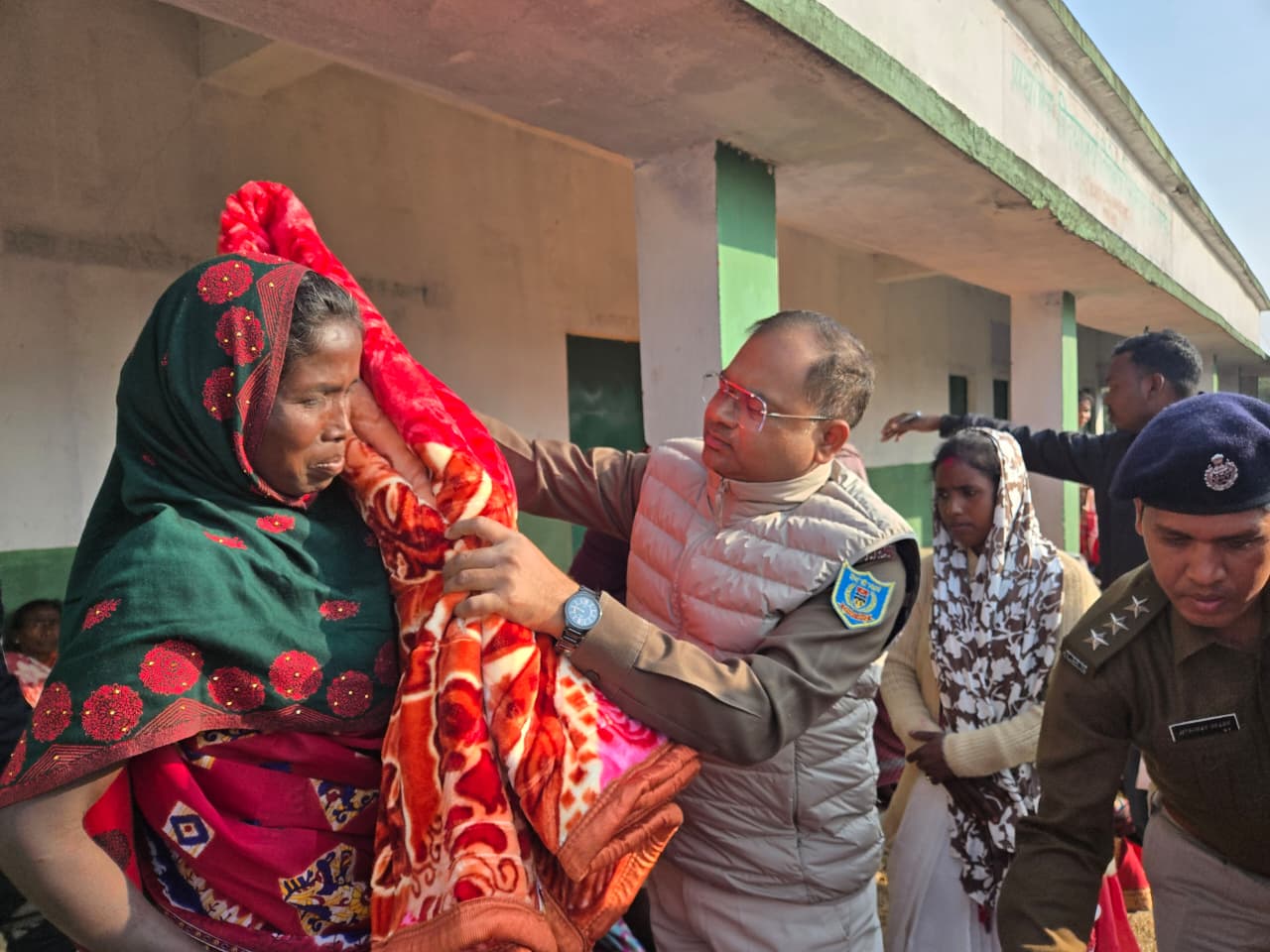 गिरिडीह. गिरिडीह के एसपी डॉ. विमल कुमार बुधवार को गांडेय प्रखंड के सुदूरवर्ती इलाके महेशपुर तिलोबानी गांव पहुंचे. एसपी डॉ. विमल कुमार ने गिरिडीह पुलिस के द्वारा चलाए जा रहे अभियान के तहत गांव के जरूरतमंदों के बीच ठंड से बचाव के लिए कंबल और अन्य जरूरत के सामानों का वितरण किया. इस दौरान एसपी डॉ. विमल कुमार ने बताया की ग्रामीण इलाकों में आवासित आम जनता तक गिरिडीह पुलिस की पहुंचकर एवं पुलिस के प्रति जनता के विश्वास को और अधिक सुदृढ़ बनाने के उद्देश्य से चलायी जा रही विशेष पहल के तहत गिरिडीह पुलिस एवं आम जनता के मध्य समन्वय को और अधिक मजबूत बनाने की कड़ी में गांडेय थाना क्षेत्र के सुदूरवर्ती इलाके में अवस्थित महेशपुर तिलोबनी ग्राम में पहुंचकर जरूरतमंद एवं विकलांग लोगों के बीच ठंढ से बचाव के लिए कंबल एवं अन्य सामग्रियों का वितरण किया गया. इस दौरान सुदूरवर्ती ग्रामीण इलाकों के ग्रामीणों से भेंट कर उनके समस्याओं से अवगत हुए तथा गिरिडीह पुलिस की ओर से हरसंभव मदद का आश्वासन भी दिया गया. मौक़े पर एसडीपीओ जितवाहन उरांव व थाना प्रभारी मौजूद थे.