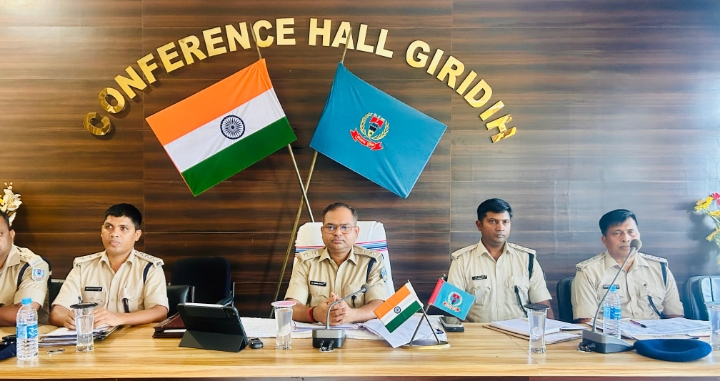 गिरिडीह. गिरिडीह के एसपी डॉ. विमल कुमार ने पपरवाटांड़ स्थित अपने कार्यालय के सभागार में जिले भर के पुलिस पदाधिकारियों के साथ बैठक की. बैठक में मुख्य रूप से सभी अनुमंडल के अनुमंडल पुलिस पदाधिकारी, इंस्पेक्टर, थाना प्रभारी और ओपी प्रभारी मौजूद रहे. बैठक के दौरान सबसे पहले एक ओर जहां बिहार चुनाव को लेकर एसपी ने सीमावर्ती इलाकों के एसडीपीओ, इंस्पेक्टर और थाना प्रभारियों को सख्त निर्देश दिया कि सीमावर्ती क्षेत्र में किसी भी तरह की कोई आपराधिक गतिविधि नहीं हो, कोई भी अवैध कारोबार नहीं हो. इसे लेकर विशेष चौकसी बरती जाए और बिहार से सटे सीमावर्ती इलाकों में पुलिस की टीम लगातार पेट्रोलिंग में निकले और हर संदिग्ध गतिविधियों पर नजर रखें. इसके अलावा एसपी डॉ. विमल कुमार ने सभी एसडीपीओ, इंस्पेक्टर थाना, प्रभारी और ओपी प्रभारियों को अपने-अपने क्षेत्र में असामाजिक तत्वों, आपराधिक किस्म के लोगों के खिलाफ कड़ी कार्रवाई करते हुए ऐसे लोगों को गिरफ्तार करने का निर्देश दिया. साथ ही सभी थाना प्रभारियों को भी अपने थानों में लंबित कांडों का जल्द से जल्द निष्पादन करने और फरार चल रहे अभियुक्तों की धर – पकड़ करते हुए गिरफ्तार करने का निर्देश दिया. इसके अलावा एसपी ने नक्सल प्रभावित क्षेत्रों में भी पुलिस की टीम को एक्टिव रहते हुए काम करने का निर्देश दिया. वहीं साइबर क्राइम के मामले को लेकर भी साइबर डीएसपी को साइबर अपराधियों के खिलाफ कार्रवाई करने का निर्देश दिया गया. बैठक में एसपी डॉ. विमल कुमार के अलावे एएसपी अभियान सुरजीत कुमार, एसडीपीओ गिरिडीह सदर जितवाहन उरांव, एसडीपीओ खोरीमहुआ राजेंद्र प्रसाद, एसडीपीओ डुमरी सुमित प्रसाद, एसडीपीओ सरिया बगोदर धनंजय राम, डीएसपी नीरज कुमार सिंह, कौशल अली समेत विभिन्न स्थानों के थाना प्रभारी, इंस्पेक्टर और ओपी प्रभारी मौजूद थे.