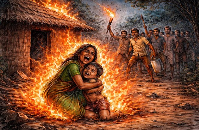 पश्चिम सिंहभूम. झारखंड के पश्चिमी सिंहभूम जिले के कुमारडुंगी में अंधविश्वास की रूह कंपा देने वाली वारदात सामने आई है. यहाँ डायन होने के संदेह में एक महिला और उसके मासूम बच्चे को पेट्रोल छिड़ककर जिंदा जला दिया गया. इस जघन्य हत्याकांड में मां-बेटे की मौके पर ही मौत हो गई, जबकि पति की हालत गंभीर बनी हुई है. रोंगटे खड़े कर देने वाली इस घटना को अंजाम देने के बाद 12 आरोपियों ने खुद थाने पहुंचकर सरेंडर कर दिया है. पुलिस ने मुख्य आरोपियों को हिरासत में लेकर मामले की जांच शुरू कर दी है और गांव में भारी पुलिस बल तैनात किया गया है.