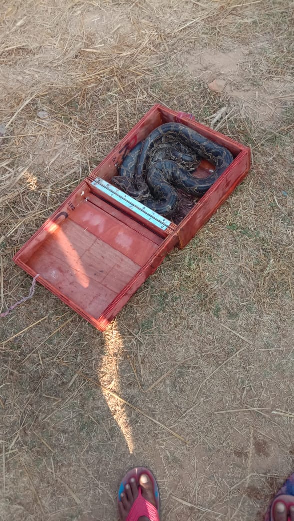 गिरिडीह. काठ के बक्सा से अजगर निकलने का मामला गिरिडीह जिले के देवरी प्रखंड क्षेत्र में चर्चा का विषय बना हुआ है. मामला देवरी थाना क्षेत्र अंतर्गत जलखरियोडीह गांव से जुड़ा हुआ है. चर्चा है की उम्मीद थी बक्सा में कीमती वस्तुएं (खजाना) हो सकती है. लेकिन बक्सा खोलते हीं उसमें अजगर निकल आया. वन विभाग के द्वारा दी गयी जानकारी के मुताबिक अजगर काफी छोटा यानी शिशु अवस्था में था. इस संबन्ध में मिली जानकारी के मुताबिक जलखरियोडीह गांव की एक महिला ऑटो से चकाई से वापस अपने घर लौट रही थी. इसी क्रम चकाई में हीं उक्त ऑटो में एक ब्यक्ति कपड़ा से लिपटा हुआ बक्सा लेकर ऑटो में चढ़ा और बटपार गांव के पास ऑटो से उतर गया. इसके बाद महिला अपने गांव पहुंची तो ऑटो के चालक ने महिला के सामान के साथ बक्सा को भी उतार कर चला गया, अपने सामान के साथ बक्सा लेकर घर पहुंचने के बाद महिला ने जब बक्सा को खोला तो उसमें अजगर देख महिला के होश उड़ गए. इस दौरान महिला के किसी तरह से खुद को संभाला और बक्सा को बंद कर अजगर को गांव स्थित तालाब के पास फेंक दिया. हलांकि ग्रामीणों को इसकी जानकारी हुई तो अजगर को पुनः बक्से में डालकर बंद कर दिया और वन विभाग को मामले की सूचना दी. सूचना पर वनकर्मियों ने अजगर को कब्जे में लेकर उसे जंगल में ले जाकर छोड़ दिया. इस सम्बंध में देवरी के वनपाल नीरज पांडेय ने बताया की जलखरियोडीह गांव से अजगर का बच्चा को रेस्क्यू कर उसे जंगल में छोड़ दिया गया है, अजगर वजन तकरीबन पंद्रह किलोग्राम था.