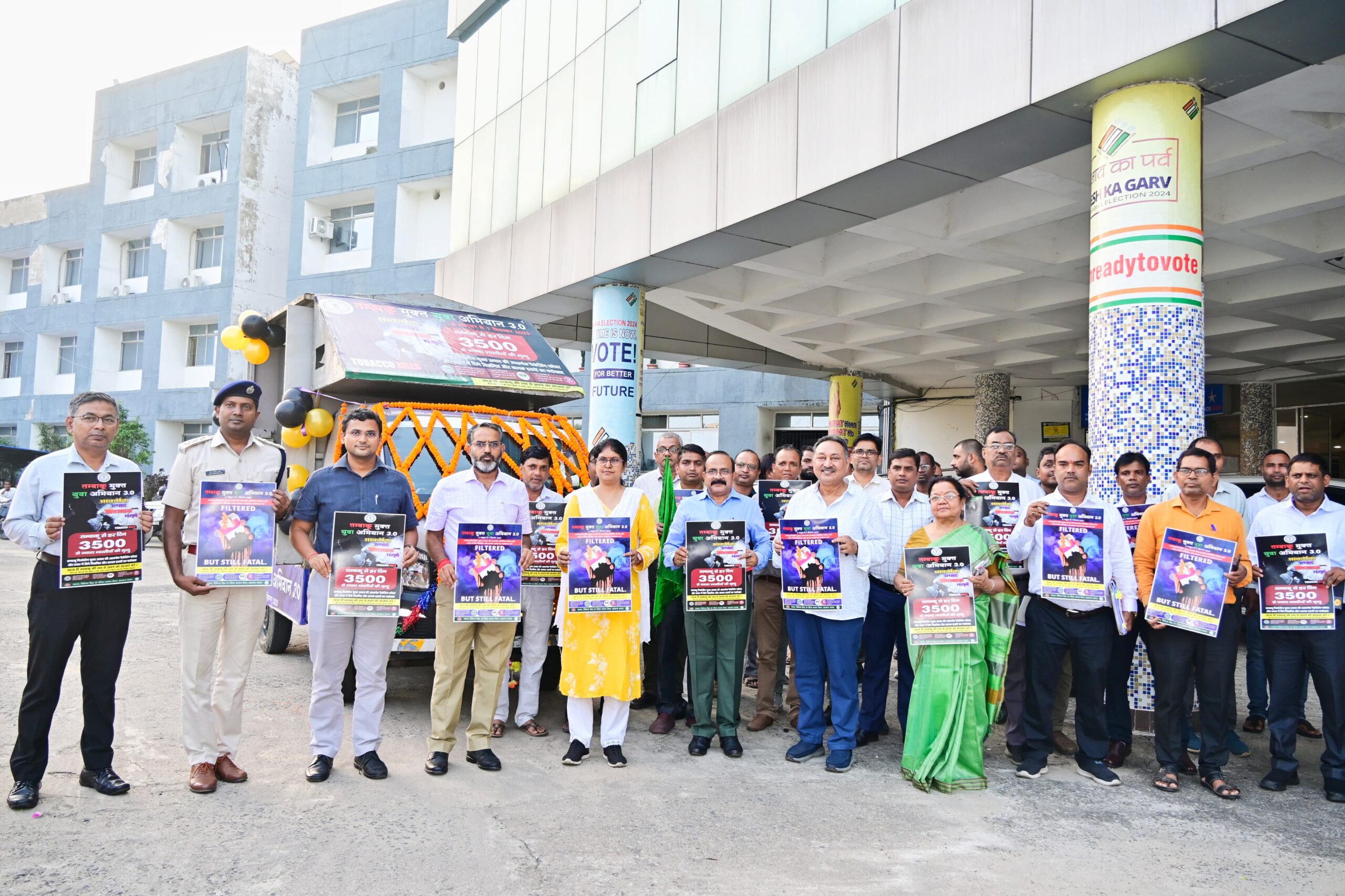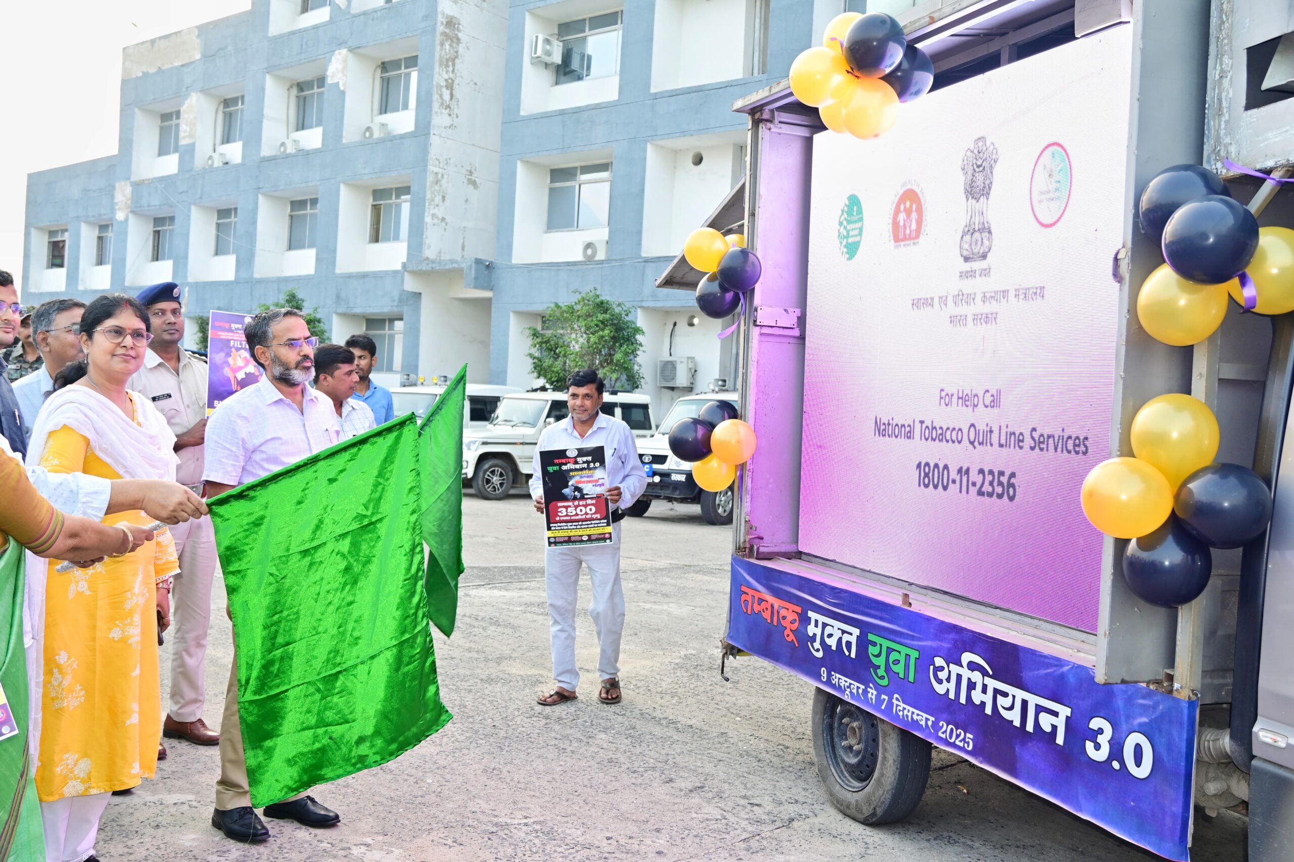 गिरिडीह: जिले के युवाओं को तंबाकू के हानिकारक प्रभावों से बचाने और जिले को तंबाकू मुक्त बनाने के उद्देश्य से आज ‘तंबाकू मुक्त युवा अभियान 3.0’ का शानदार आगाज़ हुआ। जिला उपायुक्त रामनिवास यादव ने समाहरणालय परिसर से हरी झंडी दिखाकर जागरूकता रथ को रवाना किया जिसने इस 60 दिवसीय व्यापक जन-जागरूकता अभियान का औपचारिक शुभारंभ किया। राष्ट्रीय तम्बाकू नियंत्रण कार्यक्रम के तहत चलाए जा रहे इस अभियान की अवधि 09 अक्टूबर से 07 दिसंबर 2025 तक है। उपायुक्त ने इस अवसर पर उपस्थित सभी अधिकारियों और कर्मचारियों को तंबाकू सेवन से दूर रहने की शपथ दिलाई और नशे से दूर रहने की सलाह देते हुए हस्ताक्षर भी करवाए। उन्होंने कहा कि यह अभियान पूर्व के चरणों की सफलता को आगे बढ़ाएगा और इस बार नई रणनीति तथा व्यापक जनभागीदारी पर ज़ोर दिया जाएगा।